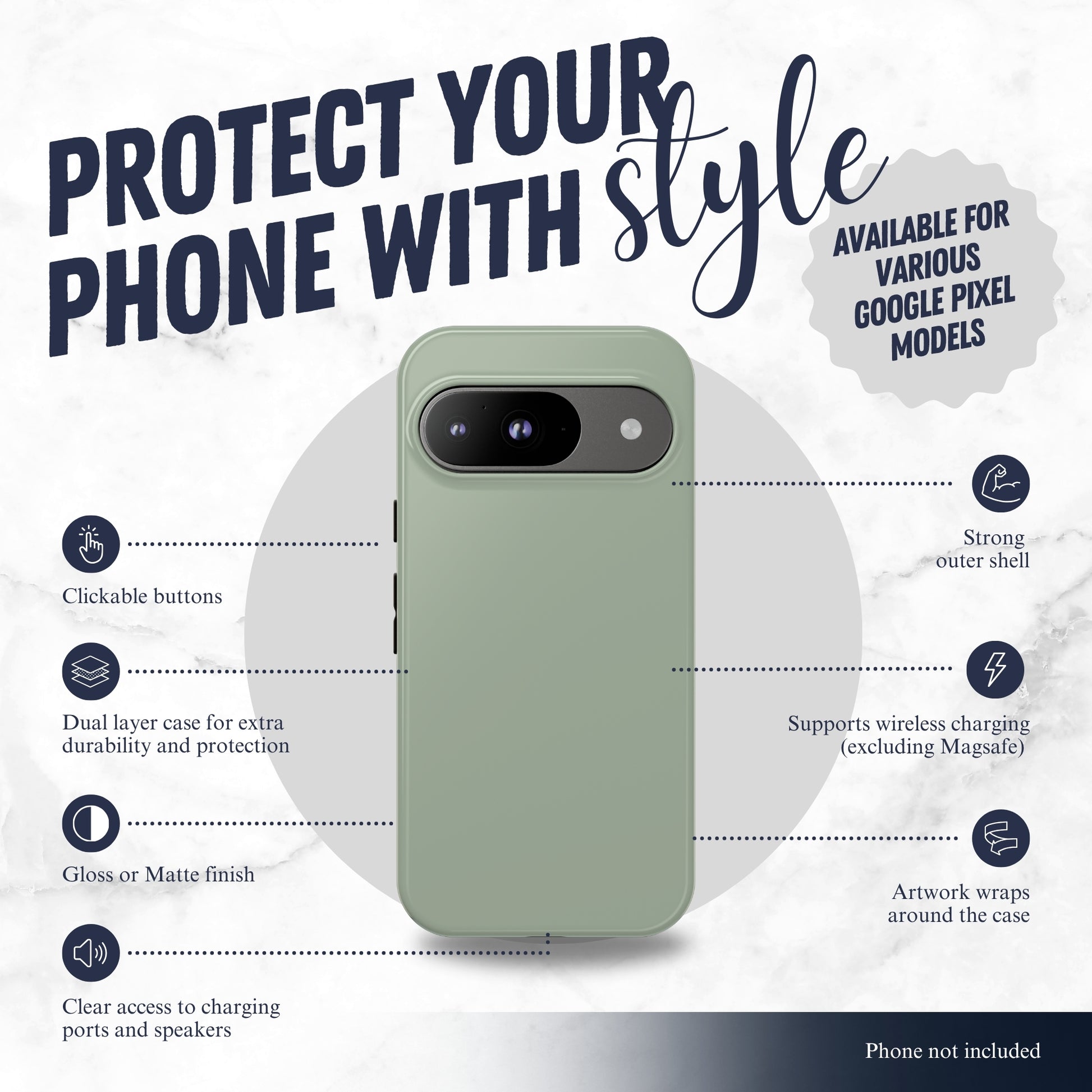 This soft sage green case is subtle, soothing, and effortlessly stylish - the kind of color that never tries too hard but always looks put together. It offers great protection while keeping your phone looking fashionable and eye catching. Printed in the USA, it comes with free shipping and a 1 year warranty for your peace of mind. (PHONE NOT INCLUDED)