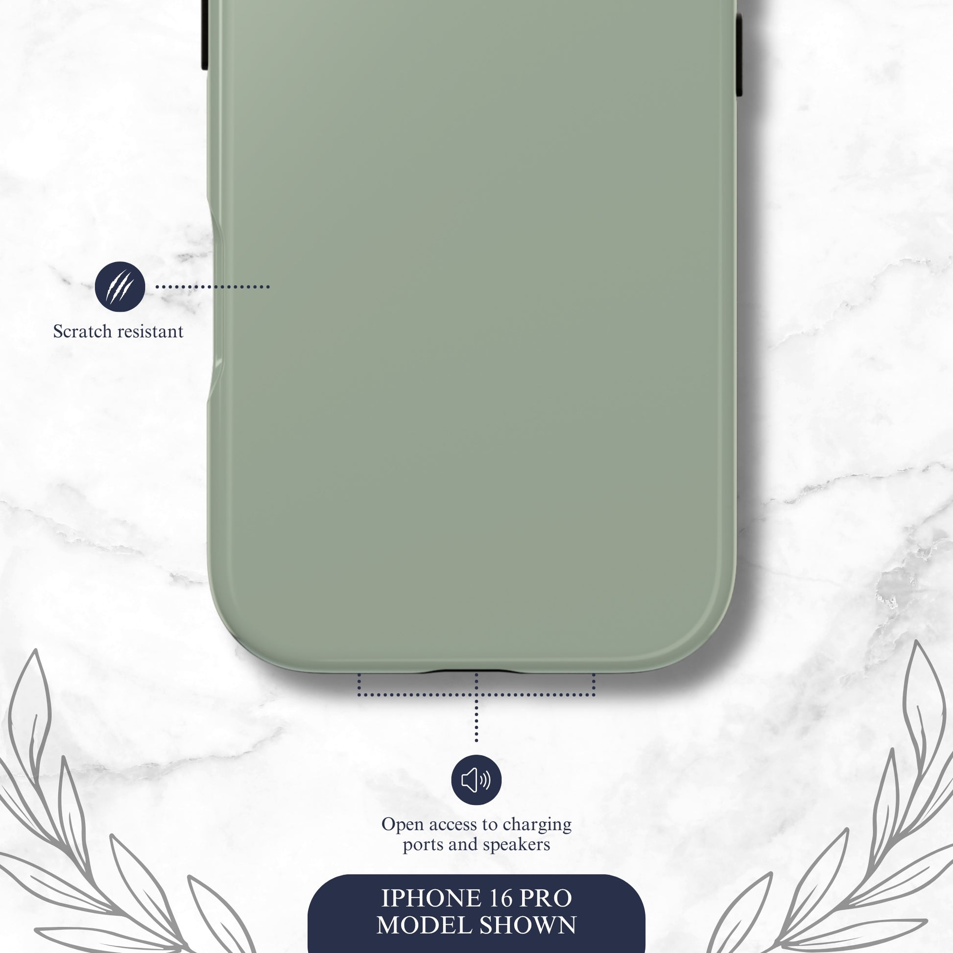 This soft sage green case is subtle, soothing, and effortlessly stylish - the kind of color that never tries too hard but always looks put together. It offers great protection while keeping your phone looking fashionable and eye catching. Printed in the USA, it comes with free shipping and a 1 year warranty for your peace of mind. (PHONE NOT INCLUDED)