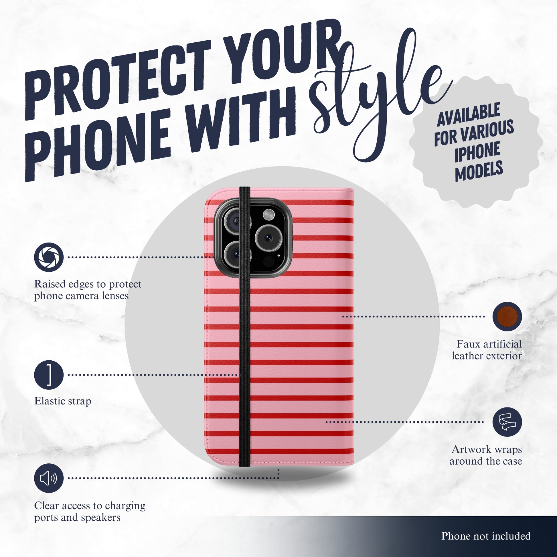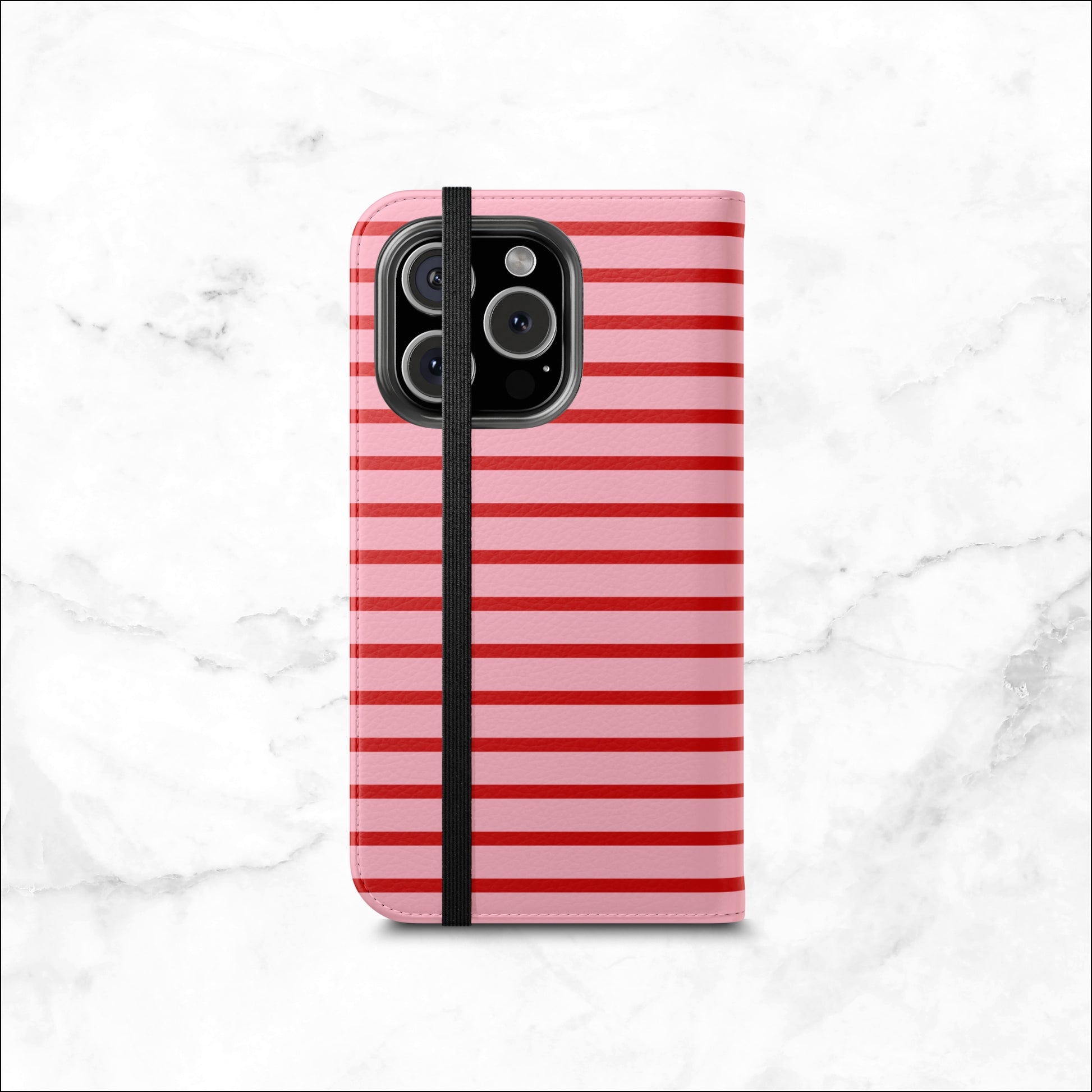 Candy Stripes - iPhone Flip Case Wallet, Leather Folio Case