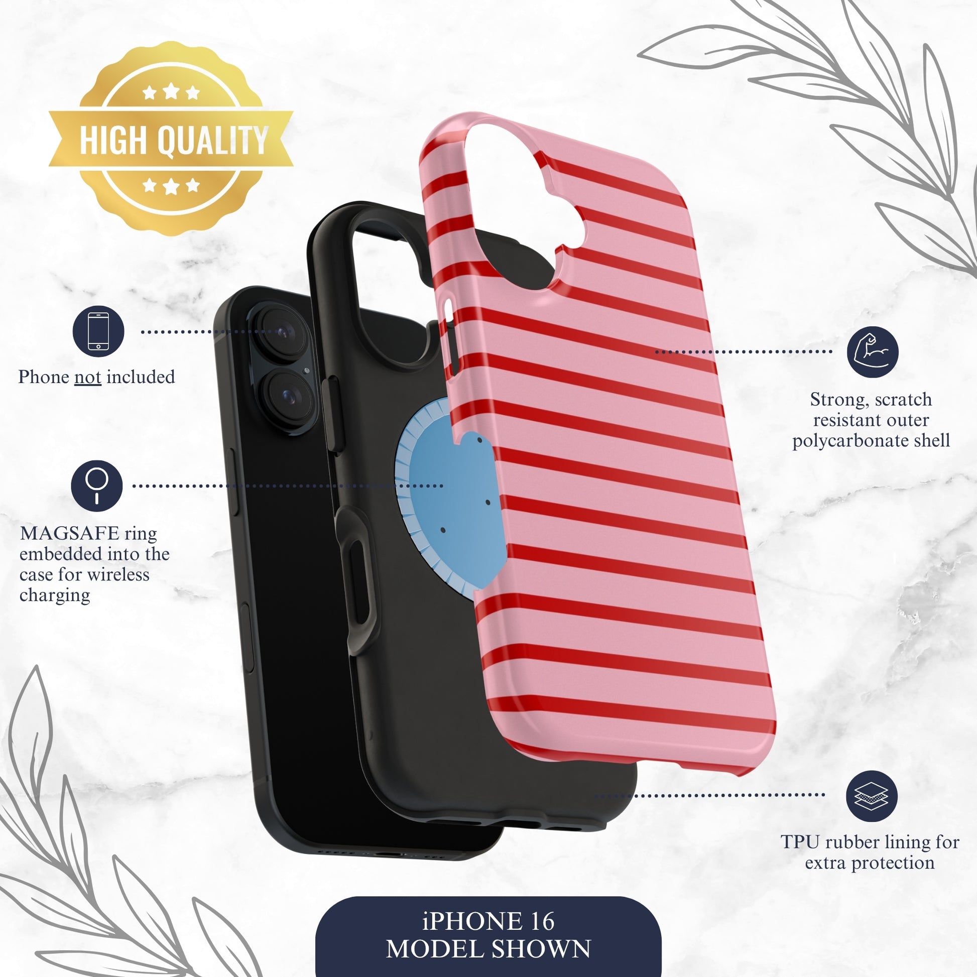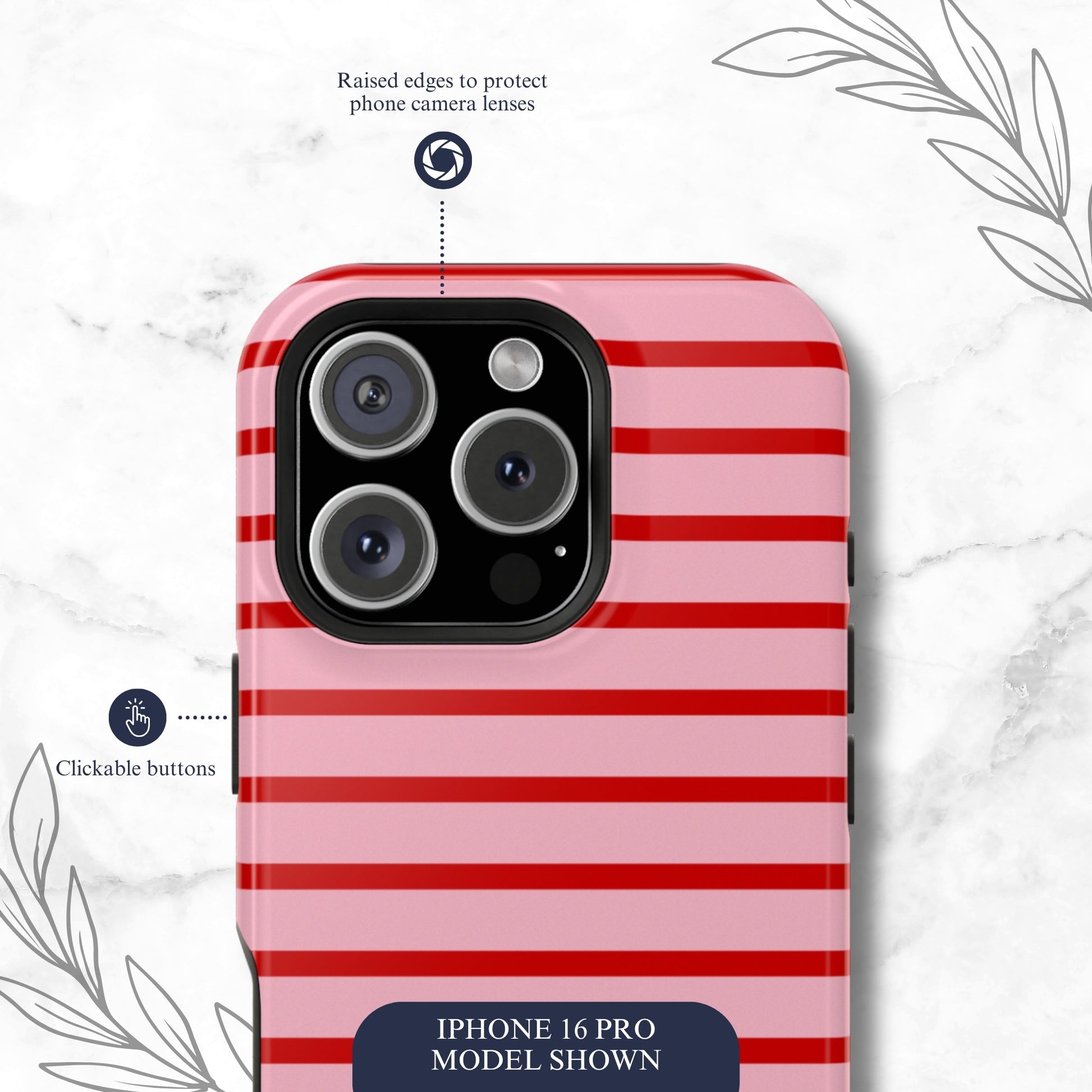 This pink and red striped phone case is bold, sweet, and just the right amount of dramatic - like wearing red lipstick to the grocery store just because. It offers great protection while keeping your phone looking fashionable and eye catching. Printed in the USA, it comes with free shipping and a 1 year warranty for your peace of mind. (PHONE NOT INCLUDED)