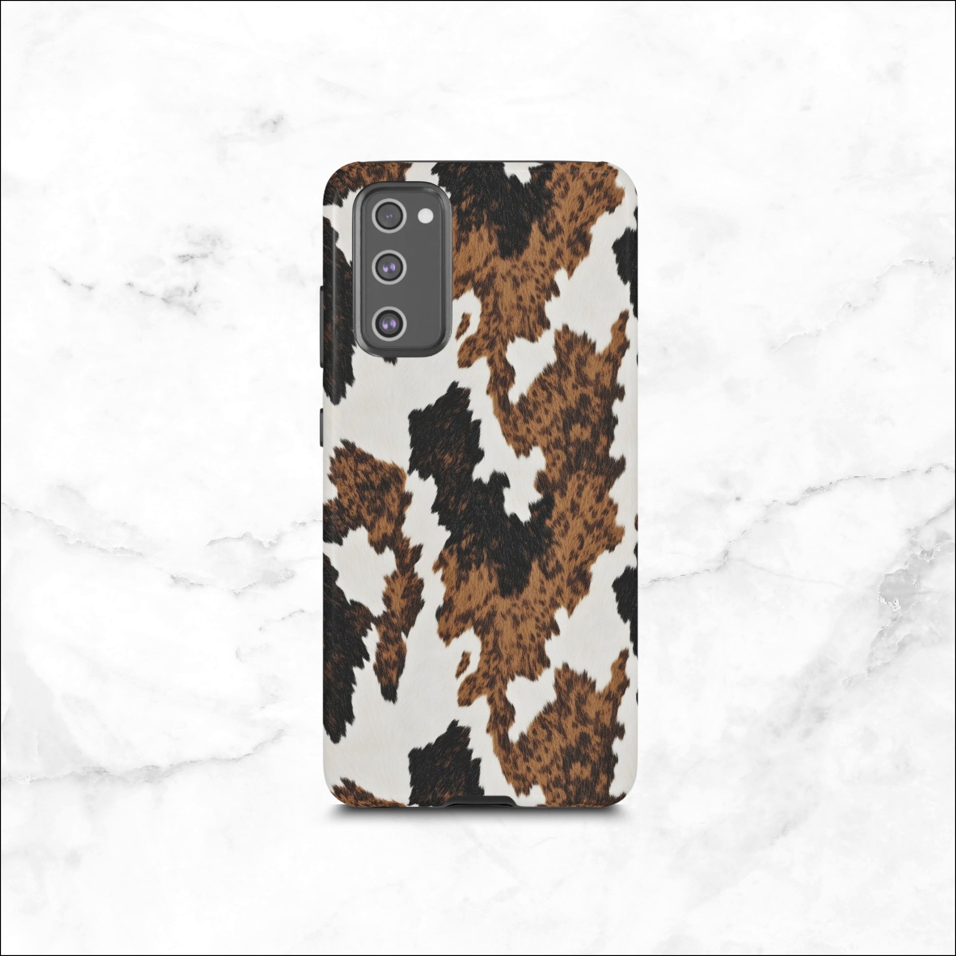 This animal print phone case brings the beauty of untamed terrain straight to your fingertips. With layered tones of caramel, cream, and inked brown, this cowhide inspired case blurs the line between chic and runway-ready. It offers great protection while keeping your phone looking fashionable and eye catching. Printed in the USA, it comes with free shipping and a 1 year warranty for your peace of mind. (PHONE NOT INCLUDED)