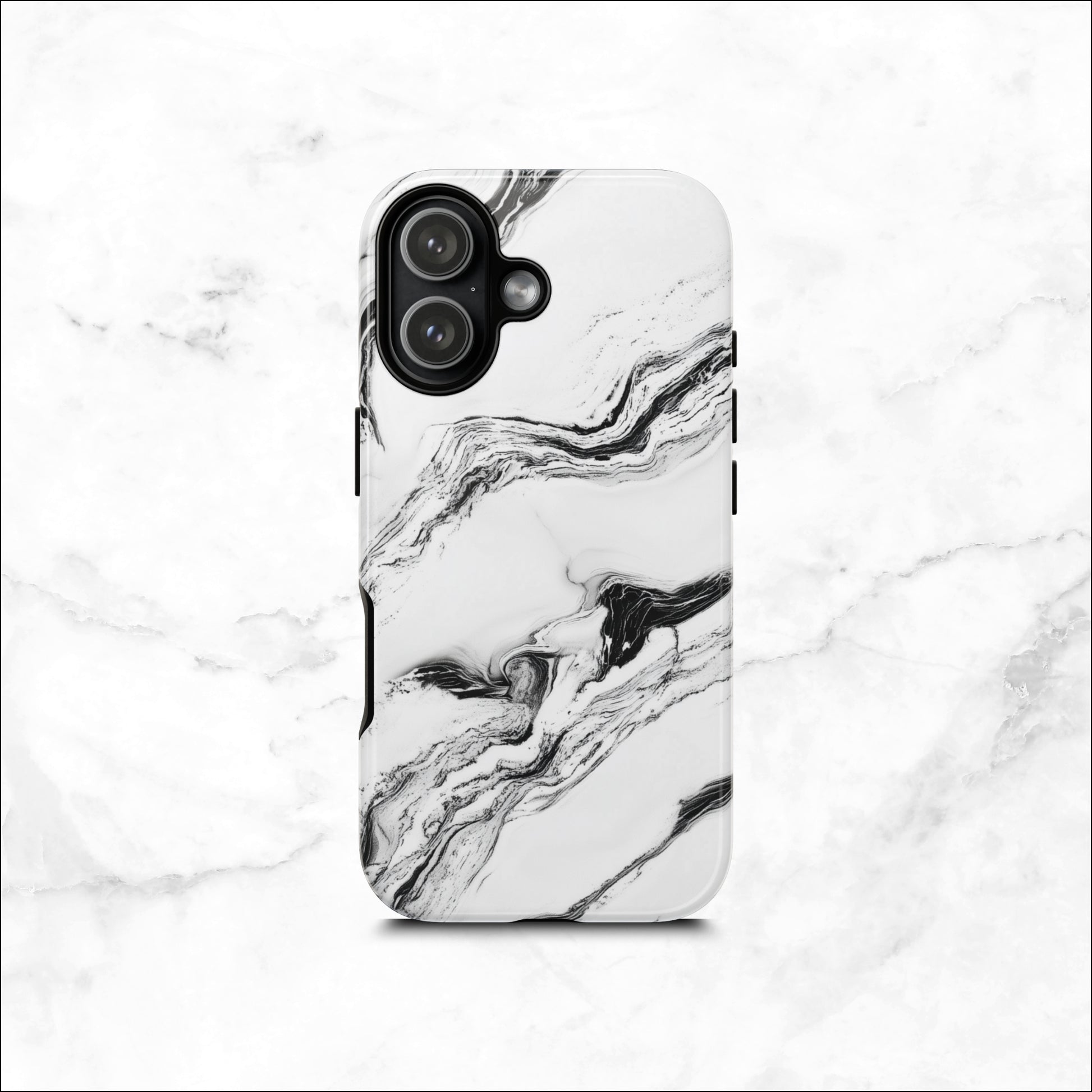 Crafted for those who love bold simplicity, this black and white marble phone case turns everyday protection into a statement piece. The swirling marble design creates a perfect harmony between light and dark, giving your phone a sleek, elevated look. It offers great protection while keeping your phone looking fashionable and eye catching. Printed in the USA, it comes with free shipping and a 1 year warranty for your peace of mind. (PHONE NOT INCLUDED)