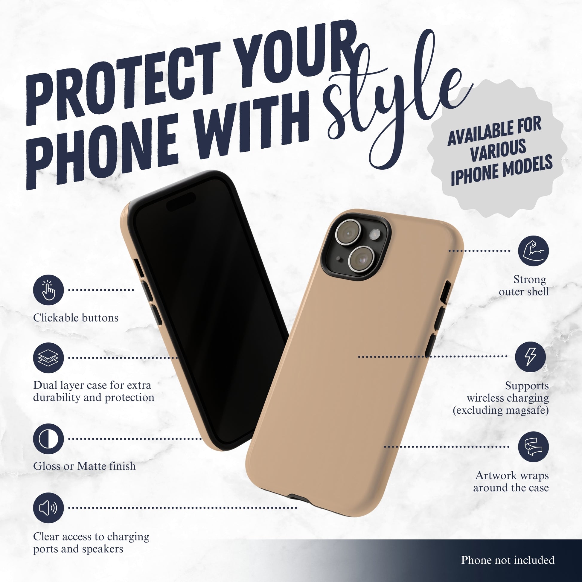 Consider this your phone’s version of a perfect neutral outfit. This warm beige phone case is soft, minimal, and goes with literally everything - from hoodies to blazers, iced coffee runs to late-night calls. It offers great protection while keeping your phone looking fashionable and eye catching. Printed in the USA, it comes with free shipping and a 1 year warranty for your peace of mind. (PHONE NOT INCLUDED)